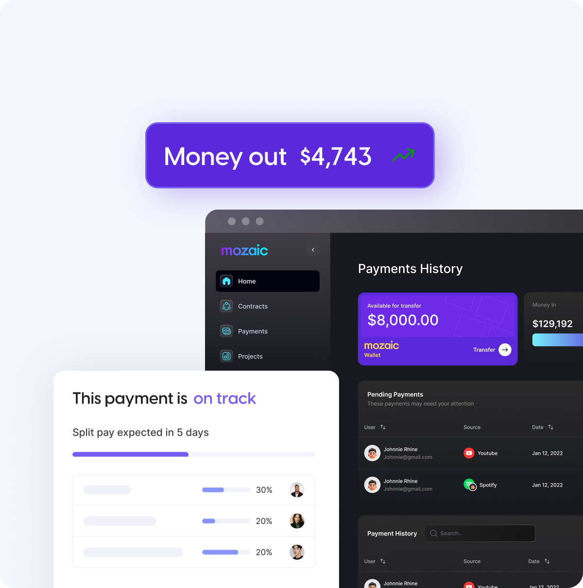 Flat, tiered, percentage splits. Distribute payouts that align with your projects’ unique structure.